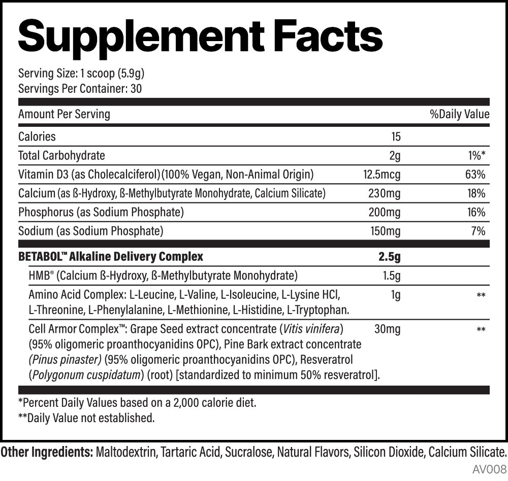 HMB is a natural metabolite of the powerful BCAA Leucine and it has been well researched for its ability to increase muscle protein synthesis while simultaneously decreasing muscle protein breakdown. HMB is arguably one of the most researched supplement ingredients proven to improve athletic performance.